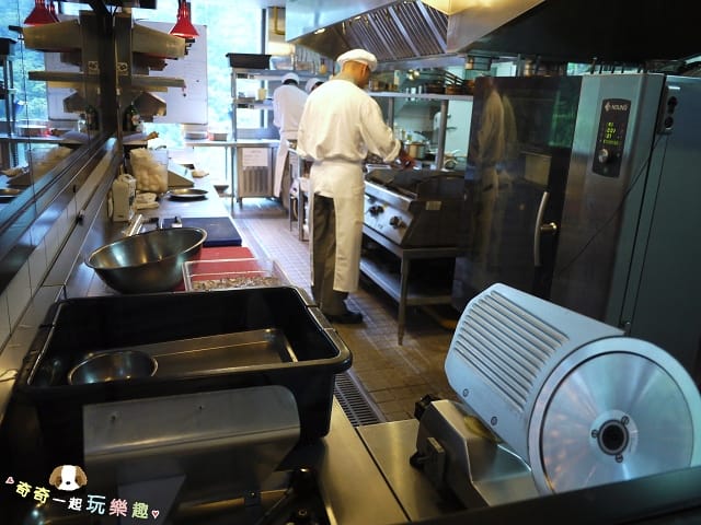 開放式的廚房,一樣都是大面落地窗,
