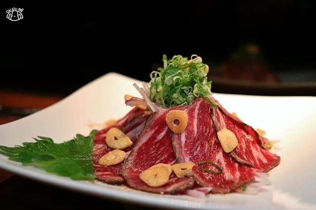 以頂級美國生牛肉外表稍微煎烤後切片,佐日本橙醋,