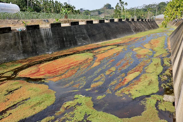 【嘉義旅遊】仁義潭水庫(溢洪道) 滿江紅-隱藏版秘境 海藻地圖